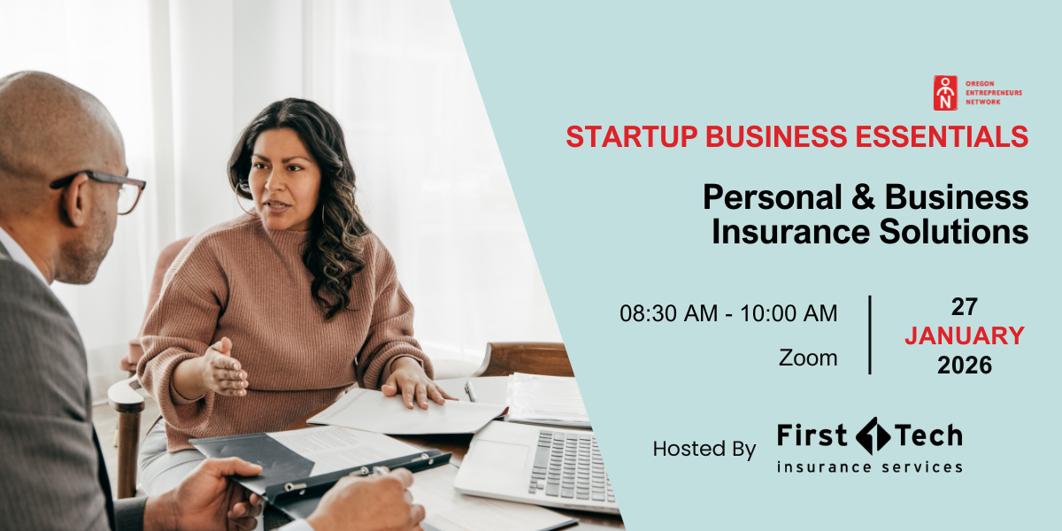 Join Oregon Entrepreneurs Network and our partners at First Tech Federal Credit Union interactive conversation on Tuesday, January 27th starting at 8:30 am on Zoom hosted by First Tech Insurance Services, where they will explore how Personal Lines offering, including Excess Umbrella coverage, is important to everyone but especially a small business owners.