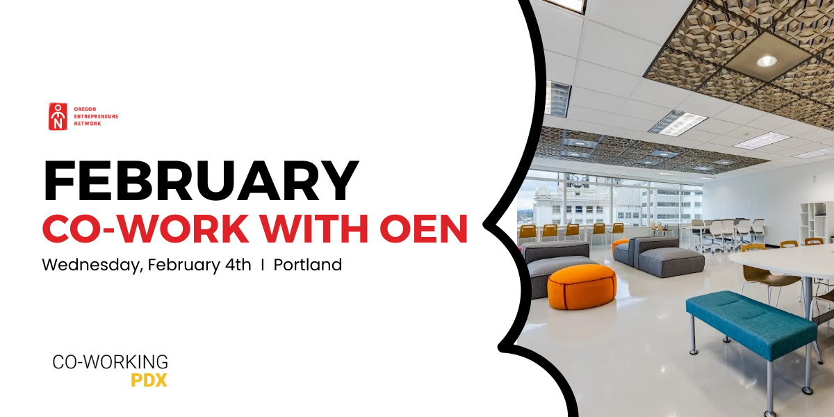 Oregon Entrepreneurs Network is hosting our first Co-Work with OEN of 2026 on Wednesday, February 4th from 9:00 am - 4:00 pm at Co-Working PDX at Fox Tower in downtown Portland.