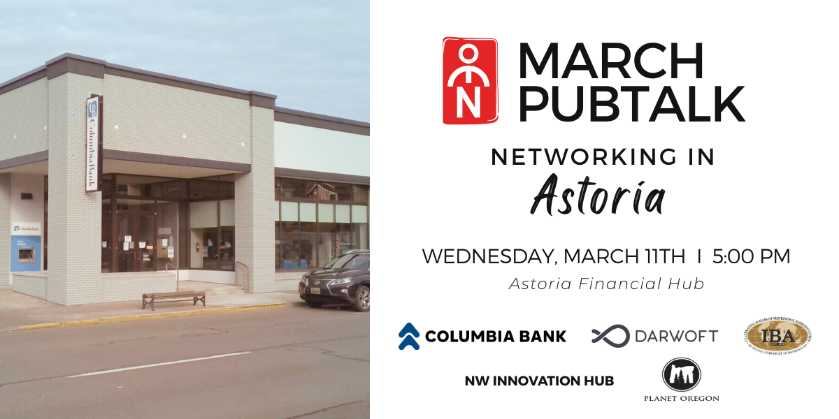 Oregon Entrepreneurs Network’s PubTalks, presented by Columbia Bank, are where Oregon’s entrepreneurial energy comes to life. Part happy hour, part startup show-and-tell, and all about making great connections.