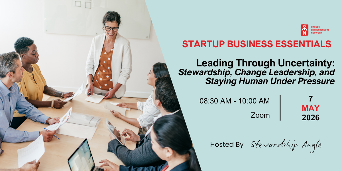 In times of change, the pressure on entrepreneurs is real. Don't miss out on this interactive session hosted by Stewardship Angle in partnership with Oregon Entrepreneurs Network on Thursday, May 7th starting at 8:30 am that will help you lead with greater clarity and confidence, so you’re not reacting in the moment or carrying the weight alone. You’ll gain practical tools to make sound decisions under pressure, communicate clearly during ambiguity, and strengthen trust across your team.