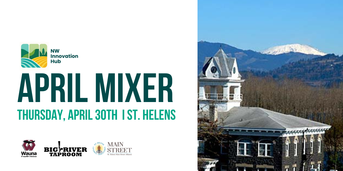 Are you a founder, entrepreneur, or community leader? Join us for an evening of connection, conversation, and community at the NW Innovation Hub: April Mixer on Thursday, April 30th starting at 4:00 pm at Big River Taproom in St. Helens.